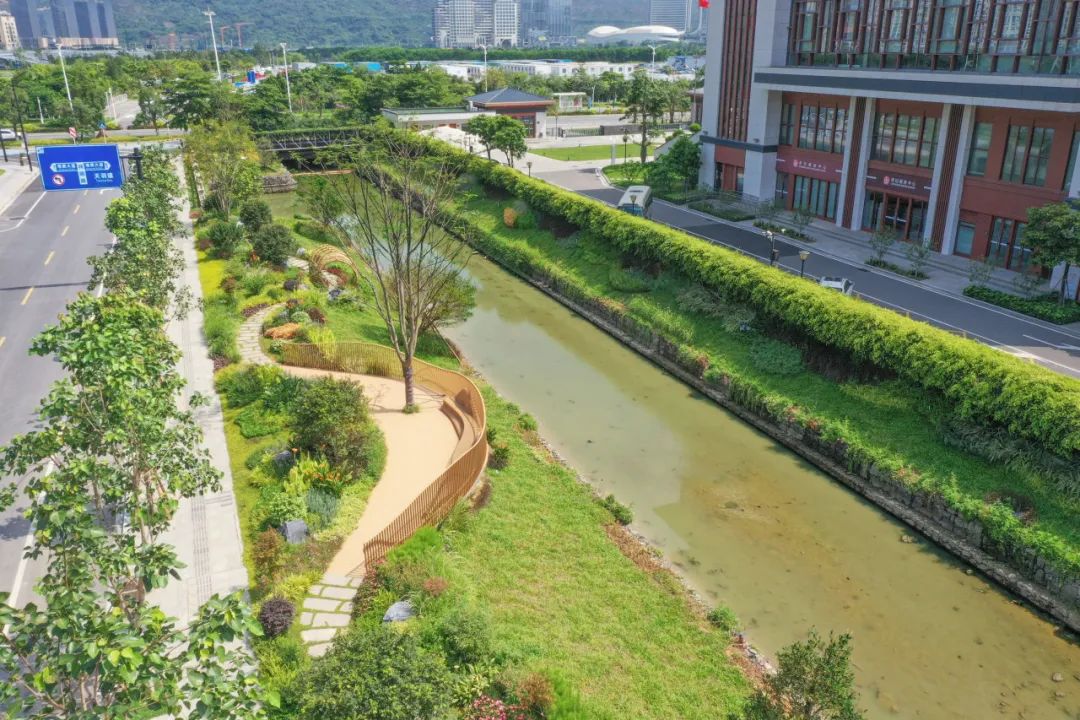 除了開展花境補苗、草皮鋪種、苗木修剪、雜草清理等日常管養(yǎng)工作外,大橫琴城資著眼邊角地、零碎地、閑置地,以見縫插綠的方式因地制宜打造高品質(zhì)綠色生活空間,如將首都師范大學橫琴伯牙幼兒園門前原黃土裸露的空地打造成空間通透、綠意蔥蘢的微綠地,將合作區(qū)市民中心周邊排洪渠兩側(cè)的荒地打造成集自然、生態(tài)、休閑于一體的濱水景觀帶,切實增強了居民的“綠色幸福感”。