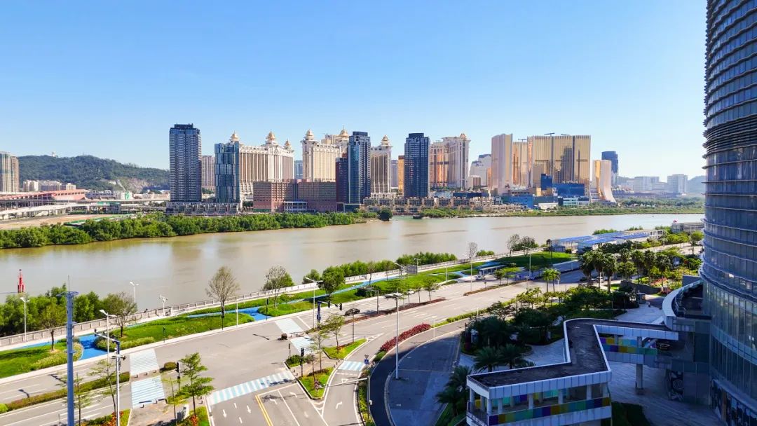 琴海東路位于橫琴島東側(cè),沿濠江而建,全長(zhǎng)4.8公里,與澳門(mén)隔江相望,這里自帶“濾鏡”,是橫琴游客觀光打卡的絕佳之地。