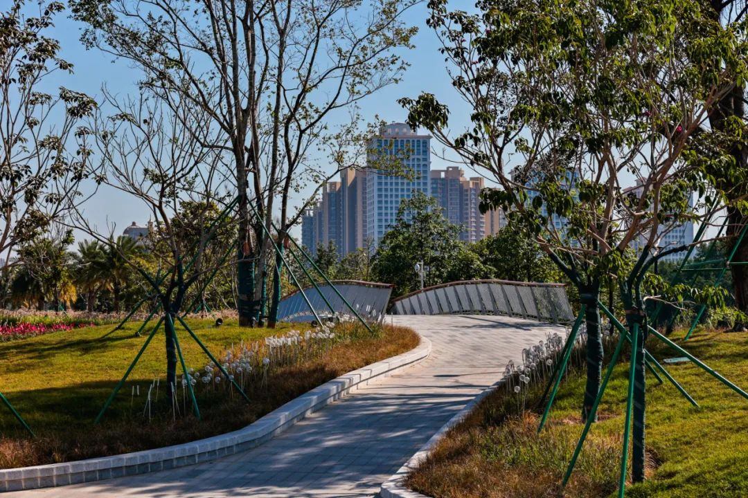 北岸利用現(xiàn)有的自然綠地,打造交通便利、內外聯(lián)系通暢的濱水地帶,并結合“榕蔭椰影”的植物主題,新增多個林蔭平臺,提供自然與人文共享的活動空間。